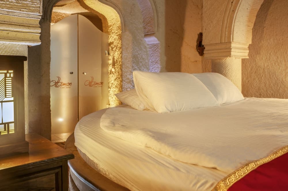 Tercihinizi; çift kişilik, görkemli süit odalarımızdan ya da devasa boyutlardaki banyolarıyla göz dolduran sık, kaya oyma odalarımızdan yana kullanabilirsiniz. Zarif, çift kişilik büyük boy yataklara sahip ve bazı hamam hizmetleri dahilinde balayı, romantik bir hafta sonu kaçamağı ya da herhangi bir özel günü taçlandırmak için mükemmel bir seçenek olan; romantizm esintileriyle özel olarak tasarlanmış lüks kaya oyma suitlerimiz en popüler ve en çok tercih edilen odalarımızdır. Seçeceğiniz tüm odalar; burada güzel vakit geçirmenizi garantilemek adına ince ekran televizyon, yerel ağ bağlantısı ile donatılmıştır.