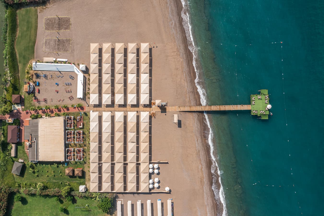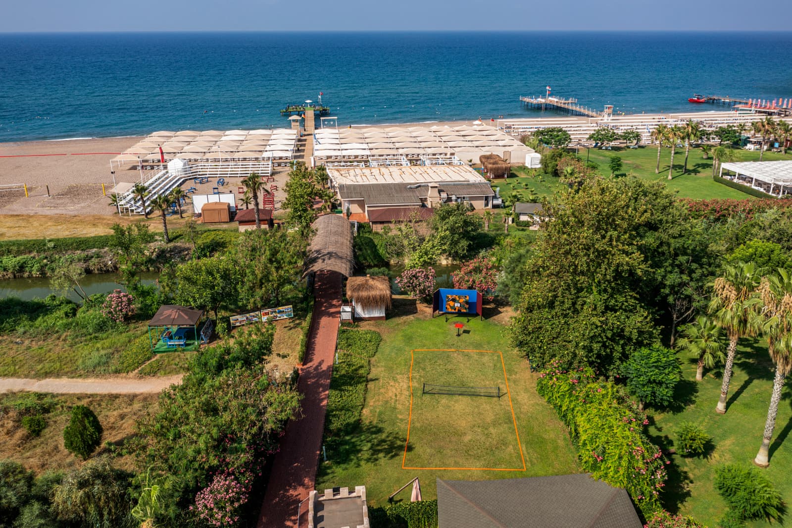 Tesisin kendine özel plajı, kum ve çakıldan oluşmaktadır. 106 m uzunluğundaki sahile sahip tesisin kendine ait iskelesi vardır. 3 adet açık yüzme havuzu ile keyifli bir tatil yaşayabilirsiniz. Denizde sadece yüzmeyecek, banana, jetski gibi su sporlarından da faydanalabiliyor olacaksınız.